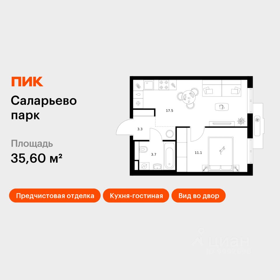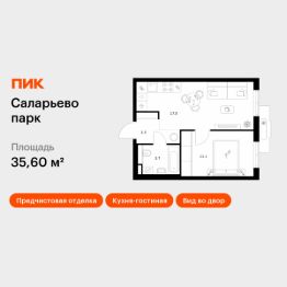 Продаётся 1-комн. квартира площадью 35,6 кв.м на 9 этаже 14 этажного дома (Корпус 57.5, Секция 5) проекта ПИК Саларьево парк. Светлый просторный подъезд на уровне земли, функциональная планировка, большие окна, предчистовая отделка.