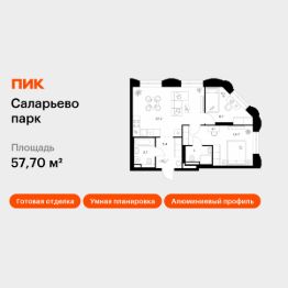 Продаётся 2-комн. квартира площадью 57,7 кв.м на 9 этаже 23 этажного дома (Корпус 69.4, Секция 4) проекта ПИК Саларьево парк. Светлый просторный подъезд на уровне земли, функциональная планировка, большие окна, c отделкой.