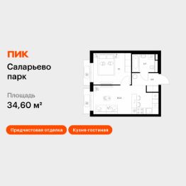 Продаётся 1-комн. квартира площадью 34,6 кв.м на 4 этаже 16 этажного дома (Корпус 57.1, Секция 1) проекта ПИК Саларьево парк. Светлый просторный подъезд на уровне земли, функциональная планировка, большие окна, предчистовая отделка.