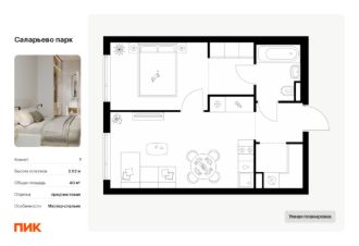 Продаётся 1-комн. квартира площадью 40 кв.м на 6 этаже 23 этажного дома (Корпус 69.1, Секция 1) проекта ПИК Саларьево парк. Светлый просторный подъезд на уровне земли, функциональная планировка, большие окна, предчистовая отделка.
