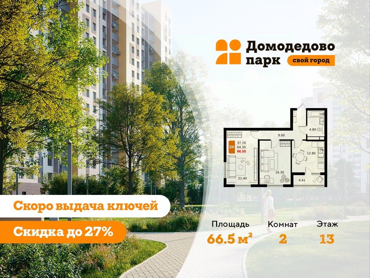 Выгода до 27%. Срок сдачи 2026 год. Продажа напрямую от застройщика в жилом комплексе комфорт класса "Домодедово парк" площадью 66.50 кв.м на 13 этаже 17 этажного дома. Квартира с предчистовой отделкой.
