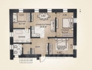 — мастер-спальня 16 м²;