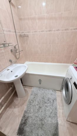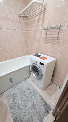 Раздельный санузел, где просторно расположится стиральная машина любых размеров.