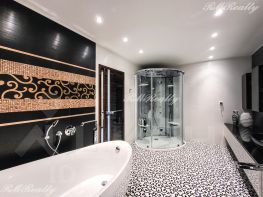 В основном санузле душевая кабина Teuco с сауной, паровой баней и контрастным душем, ванна Villeroy&Boch, комплект итальянской мебели в санузлах. Немецкая сантехника. В постирочной стиральная машина Miele, сушильный аппарат, бойлер.