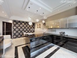 Эксклюзивный ремонт в стиле арт-деко. Мебель и оборудование от ведущих мировых производителей. Панорамные окна выходят в тихий двор. Тихая, солнечная квартира с прекрасными видами на высотку Триумф-Паласа и другие знаковые комплексы ДонСтроя.