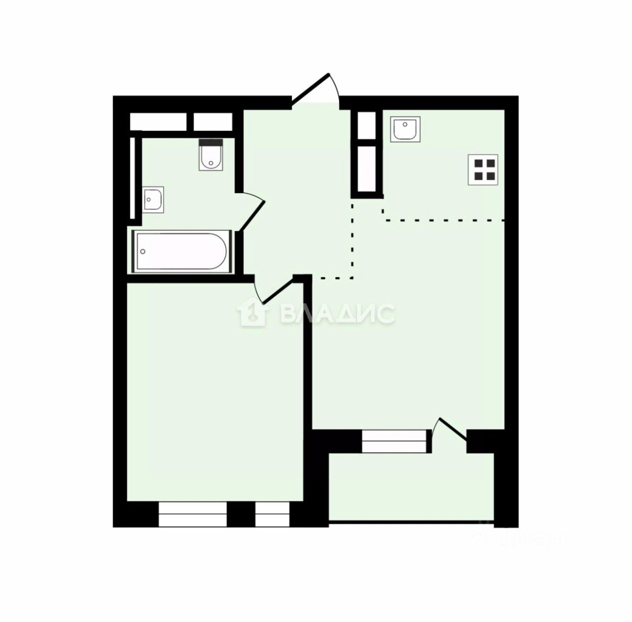 Корпус 1, подезд 3, этаж 6, площадь 33.7 м2 плюс лоджия.