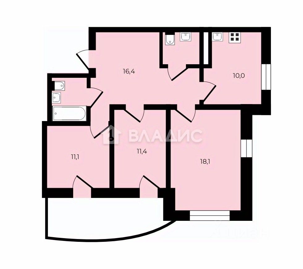 Все три спальни изолированы (18+11+10), большой просторный холл со встроенными шкафами, два санузла и огромная застекленная терраса, которую можно использовать как гостиную. Окна квартиры выходят на юго-восток и юг.
