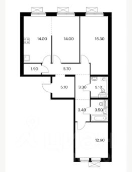 Планировка: кухня, гостиная, две изолированные спальни, 2 раздельных санузла, гардеробная, прихожая.