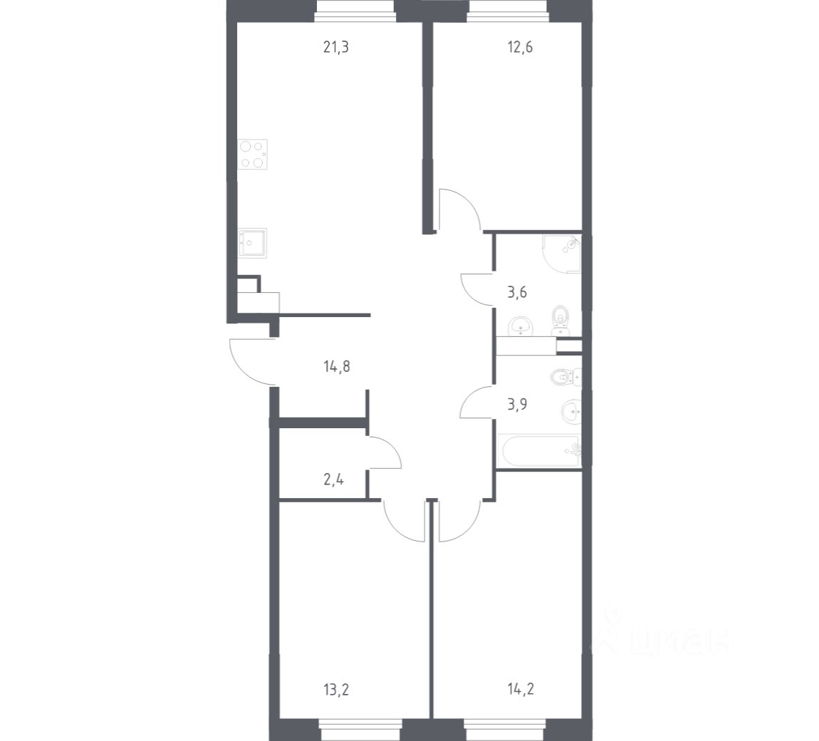 Строим кварталы для жизни с заботой о будущем. Предлагается 3-комнатная квартира комфорт-класса площадью 84,2 кв.м в корпусе 15 на 7-м этаже, в жилом комплексе "Эко Бунино".