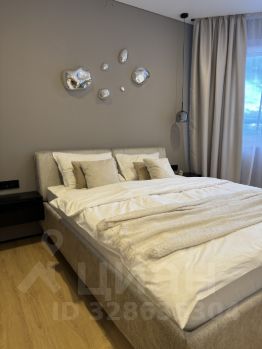 В спальне кровать Аскона с подъемным механизмом, проектор. Есть место для рабочего стола.