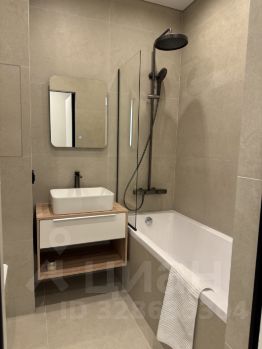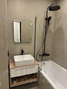 В ванной расположены тумба с раковиной, ванна, туалет. Все стены отделаны керамогранитом, электрический теплый пол.