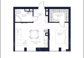 Планировка продумана для комфортной жизни: кухня-гостиная, санузел и мастер-спальня с гардеробной. Удобное зонирование, высокий этаж и хорошее естественное освещение усиливают ощущение пространства и свободы.