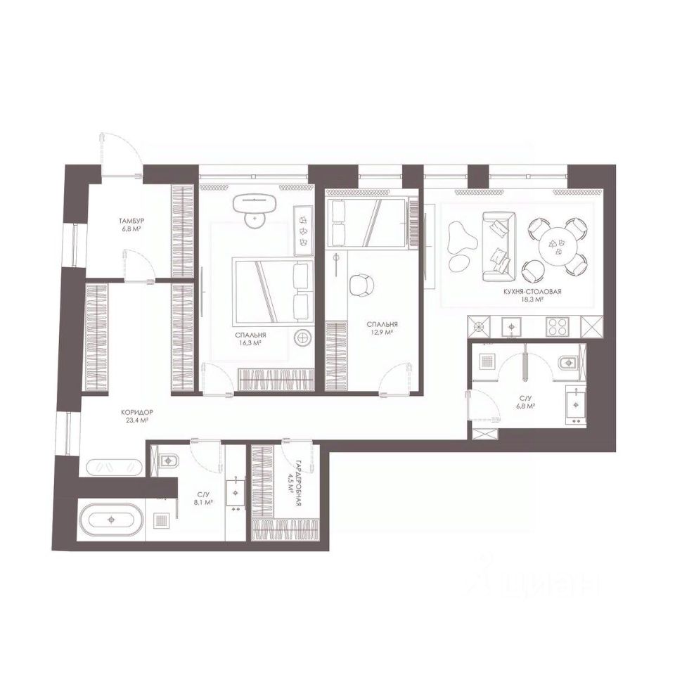 Продаётся 2-комнатная квартира в строящемся доме (Дом 23Б), срок сдачи: II-кв. 2028, общей площадью 97.1 кв.м., на 1 этаже. Новый жилой комплекс "Соло" от застройщика "КИГ" расположен по адресу: г. Москва, ул. Александра Солженицына, 23Б