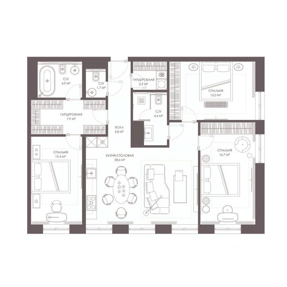 Продаётся 3-комнатная квартира в строящемся доме (Дом 23Б), срок сдачи: II-кв. 2028, общей площадью 101.5 кв.м., на 2 этаже. Новый жилой комплекс "Соло" от застройщика "КИГ" расположен по адресу: г. Москва, ул. Александра Солженицына, 23Б