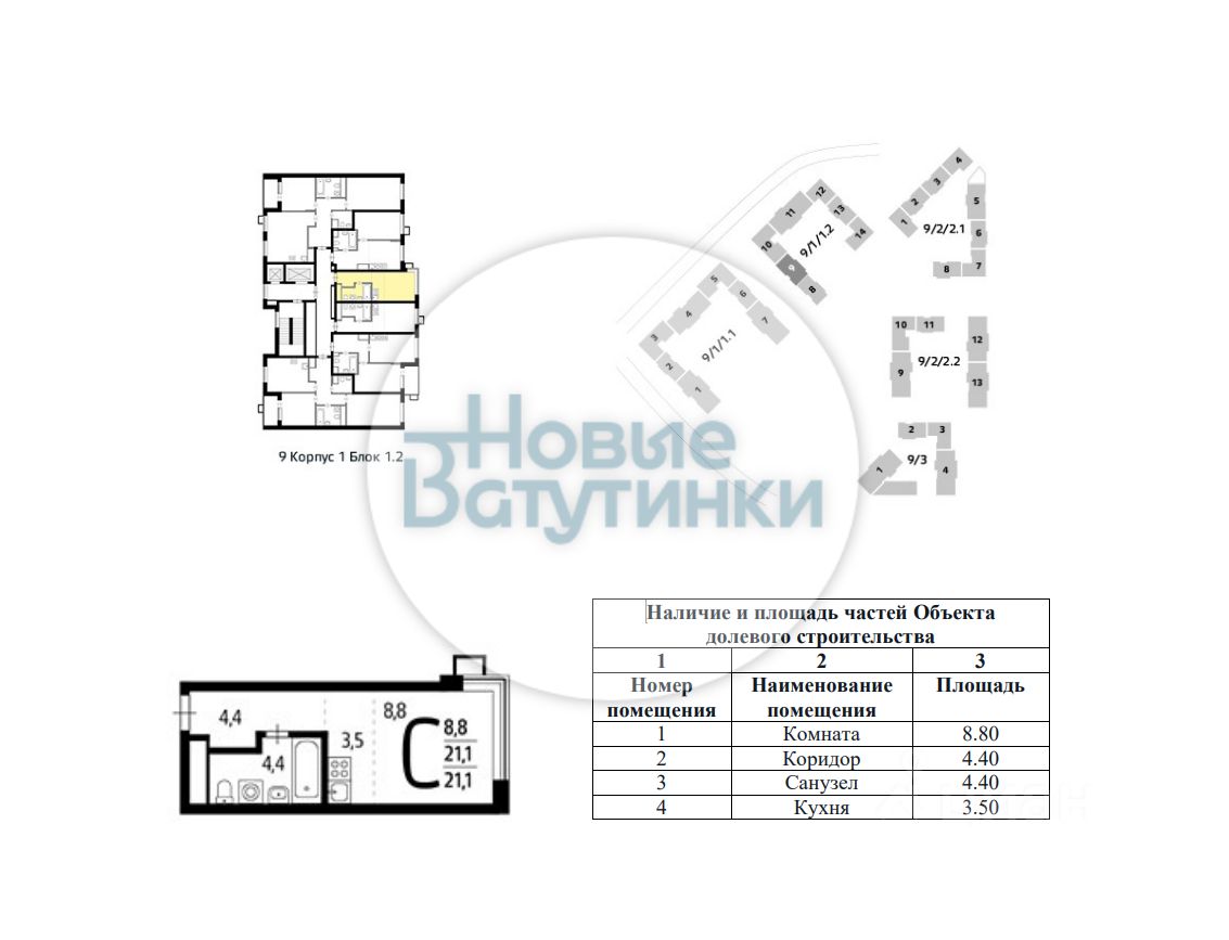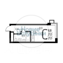 - общая площадь 21,1 м²;