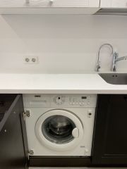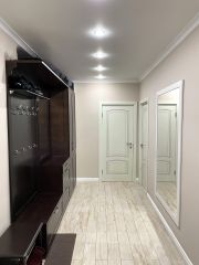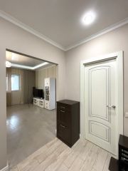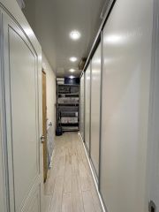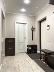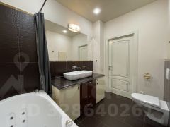 Санузел — просторный, совмещённый, словно отдельная комната для ритуалов начала и завершения дня: ровный свет, благородные фактуры, ощущение свободного дыхания. Вся эстетика квартиры — про тактильную роскошь без демонстративности, когда каждый сантиметр работает на комфорт.