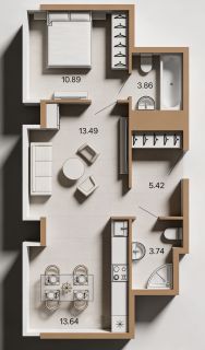 Квартира общей площадью 52 кв.м., расположена на 6 этаже из 8 этажного корпуса. Окна выходят на улицу. Боковой вид. Это лучший вид в ЖК! Уникальная планировка с тремя окнами! Ключи на руках.