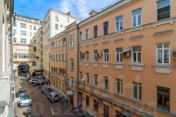 ID 23806. Уютная распашонка с авторским дизайном в стиле неоклассика расположена в тихом дворе с охраняемой парковкой и шлагбаумом в самом центре Москвы. Квартира, расположенная на 3-м этаже старинного доходного дома, получает естественное солнечное освещение с обеих сторон, но при этом не нагревается в летний период благодаря системе умных окон со встроенными жалюзи и толстой кирпичной кладке. Общая площадь - 104 кв. м. Оригинальная и функциональная планировка включает в себя уютную гостиную с зоной кабинета и столовой, небольшую кухню, спальню с гардеробной, просторную ванную комнату с окном, гардеробную для верхней одежды в прихожей, гостевой туалет. Квартира полностью укомплектована качественной мебелью и бытовой техникой. Кондиционеры в каждой комнате, приточно-вытяжная вентиляция с фильтрацией воздуха, система очистки питьевой воды, в ванной джакузи и паровая душевая кабина, бойлер, тёплый пол, видео домофон, охранная сигнализация, высокоскоростной интернет. Все окна выходят в закрытый тихий двор. Чистый подъезд. Охрана. Респектабельные соседи на этаже. В шаговой доступности 4 станции метро, магазины и супермаркеты, клубы, рестораны и фитнес центры с бассейном. Парковка в закрытом дворе. Один собственник. Свободная продажа.