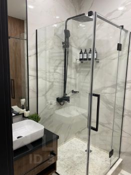 В просторной ванной комнате установлена душевая кабина, стиральная машина закрыта встроенной панелью-шкафом. Прихожая оборудована вместительными шкафами.Уют в квартире создают многоуровневые светильники разной направленности , мягкая мебель и текстиль.