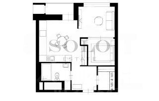 Планировка: кухня-столовая, гостиная-спальня, ванная комната, гардеробная.