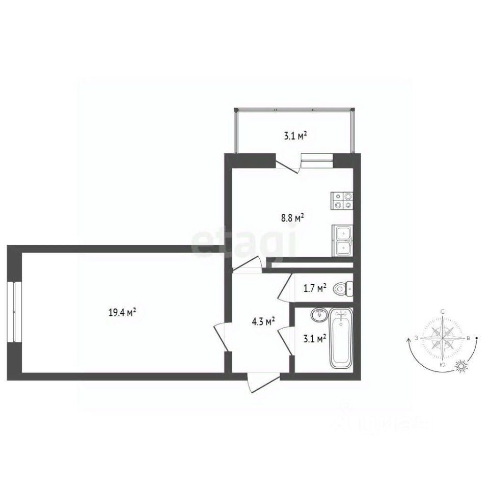 В квартире остаётся базовая мебель: кухонный гарнитур с духовым шкафом и плитой, холодильник, шкаф и кровать-диван, что позволит сэкономить на обустройстве.