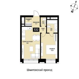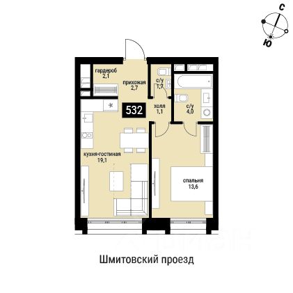 Продаётся 1-комнатная квартира, общей площадью 44.30 кв.м , на 21 этаже.