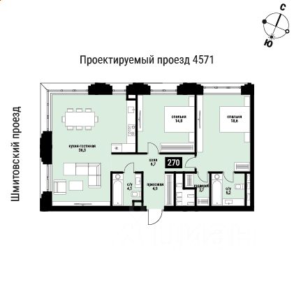 В ЖК "Шелепиха" представлено более 20 планировок квартир площадью от 23,7 до 162,1 кв. м.