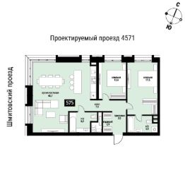 Продаётся 2-комнатная квартира, общей площадью 94.50 кв.м , на 26 этаже.