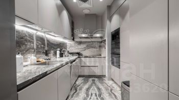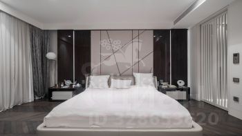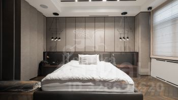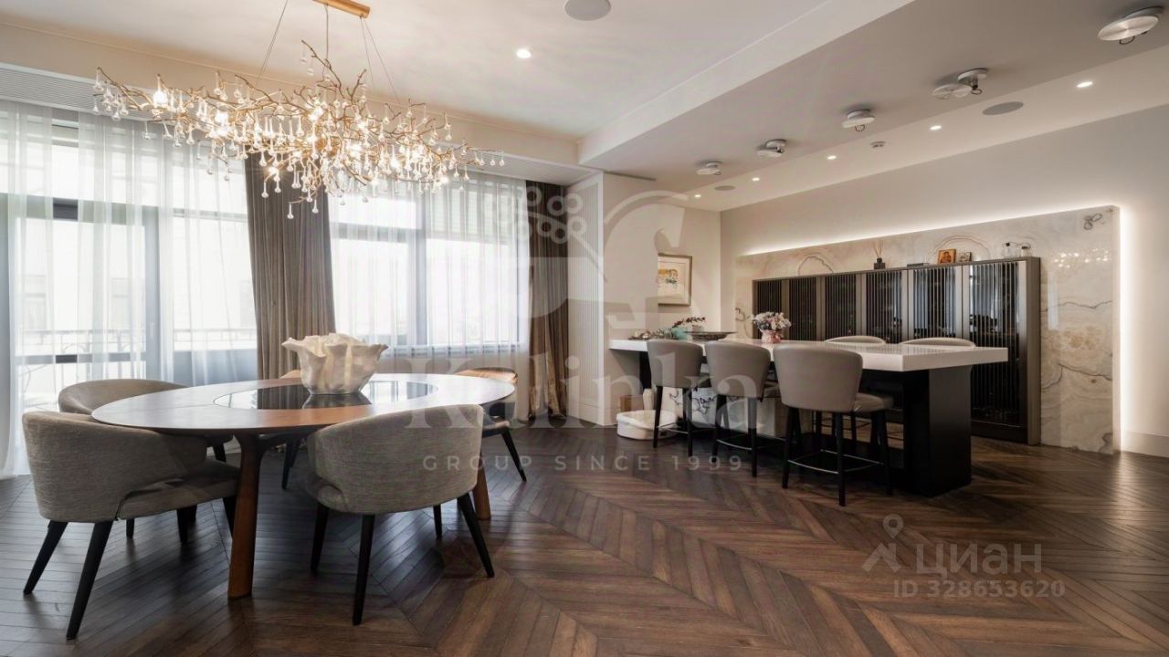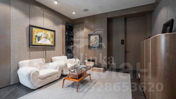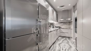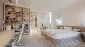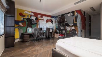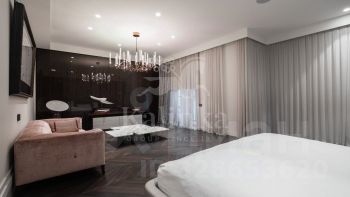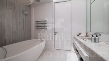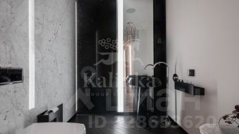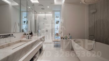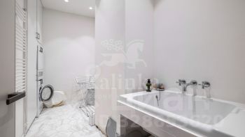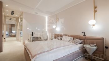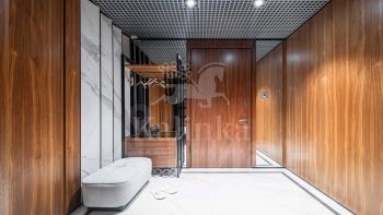 Интерьер выполнен в спокойной цветовой палитре с использованием мрамора, оникса и травертина. Высокие потолки и окна "в пол" зрительно увеличивают пространство. Установлена система "умный дом", многоступенчатая очистка воздуха и воды.