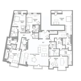 Просторные 5-комнатные апартаменты 350 кв.м в клубном доме "У Патриарших". Апартаменты занимают весь пятый этаж.
