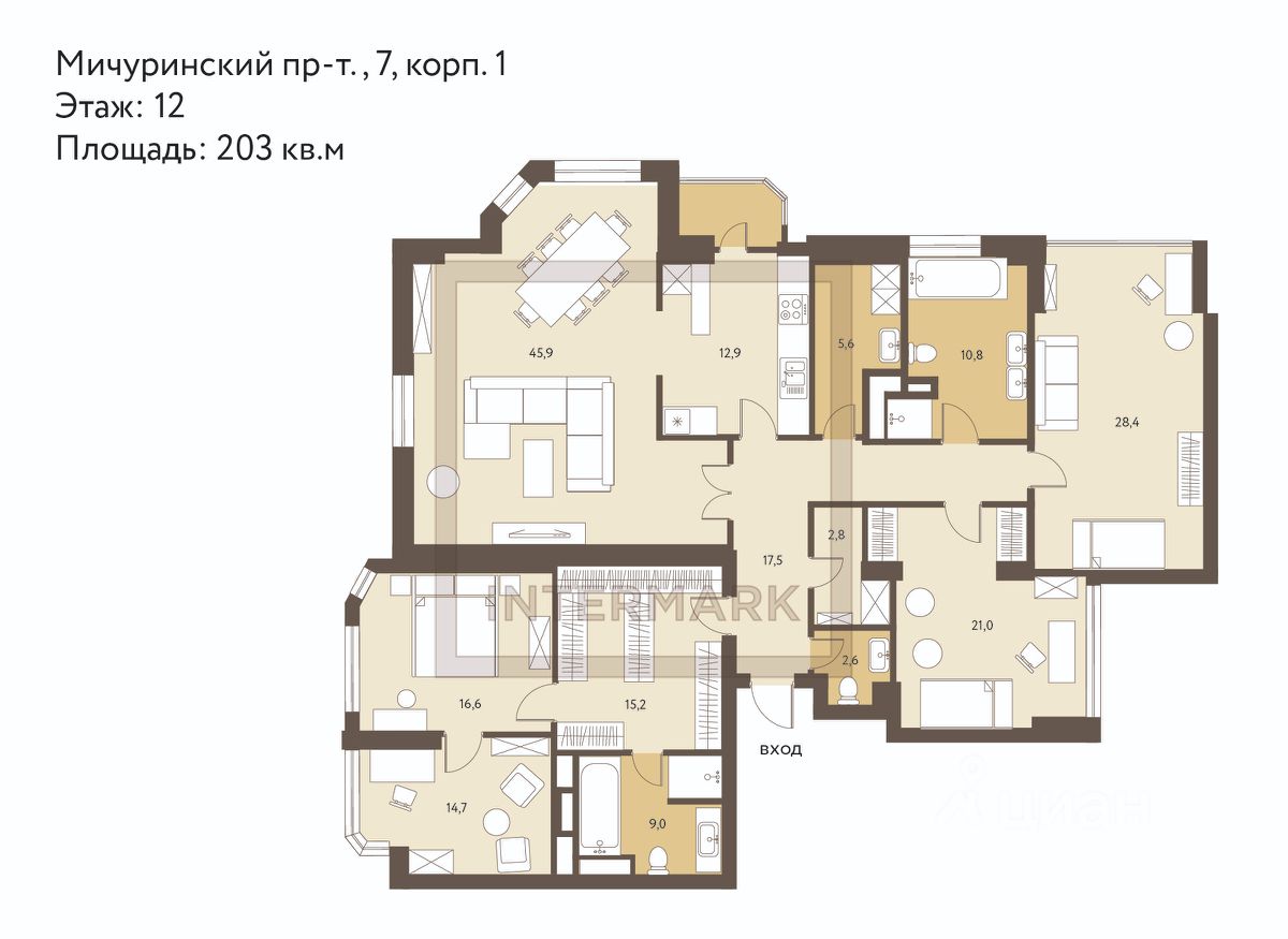 ID 65206: Эксклюзив. Только в Intermark. ЖК Квартал Шуваловский. Изящная пятикомнатная квартира в ЖК Шуваловский в районе Раменки на юго-западе Москвы.