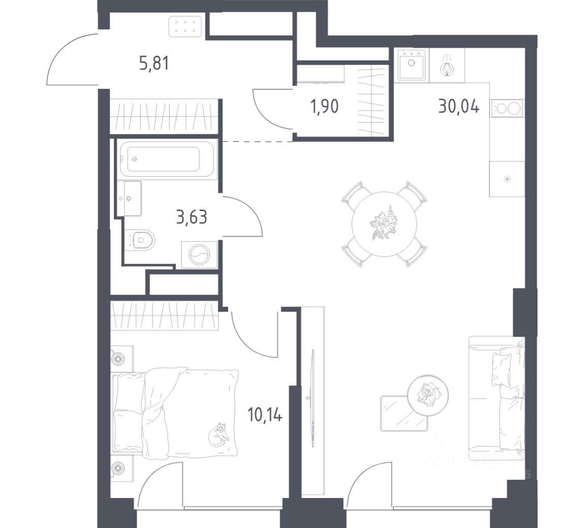 Строим кварталы для жизни с заботой о будущем. Предлагается 1-комнатная квартира бизнес-класса площадью 51,52 кв.м в корпусе 5 на 6-м этаже, в жилом комплексе "Квартал на воде".
