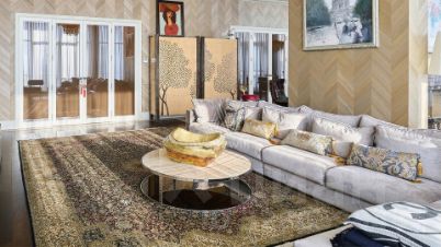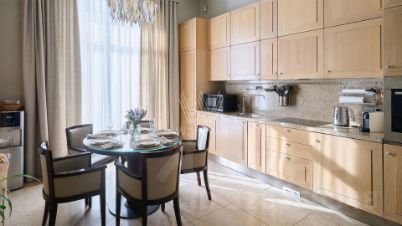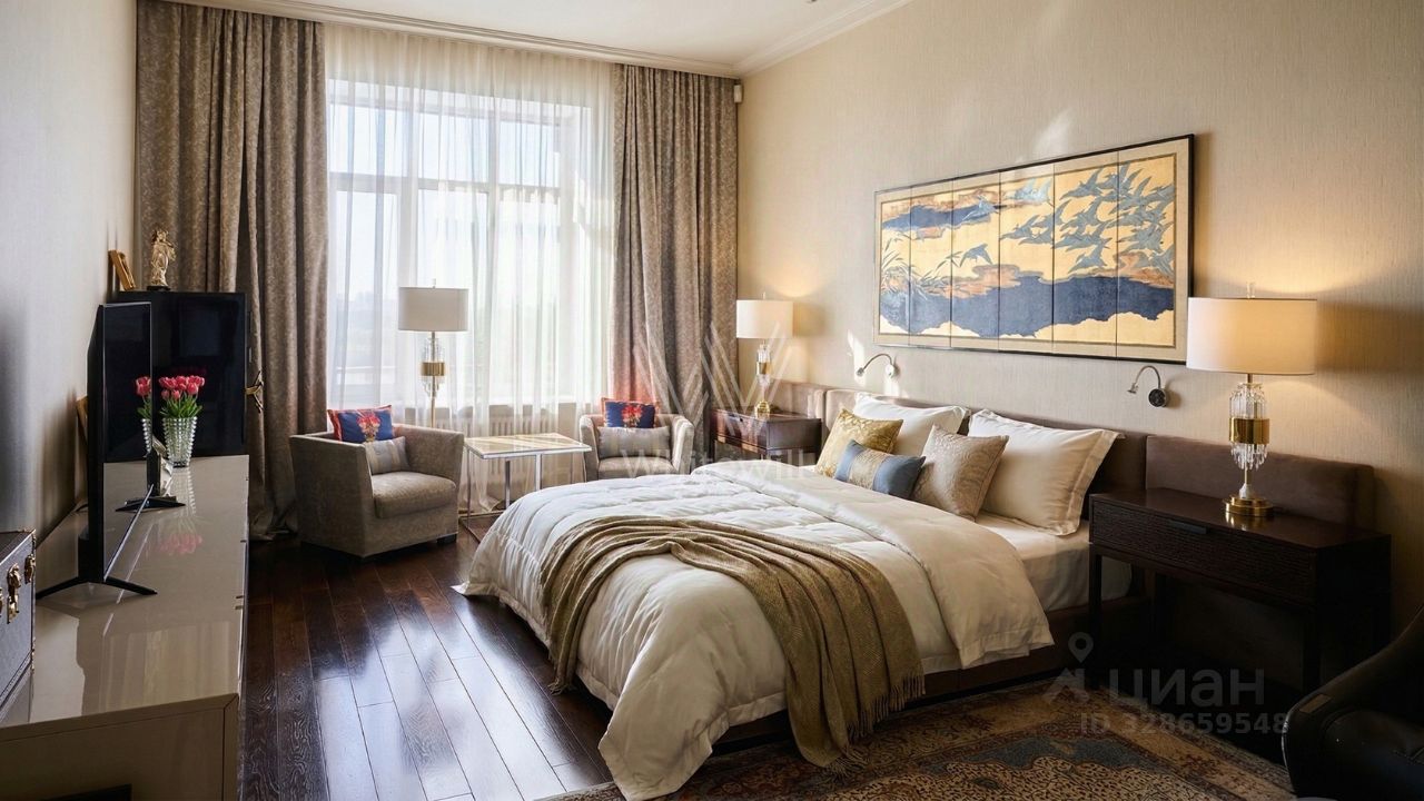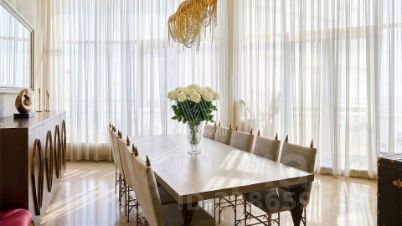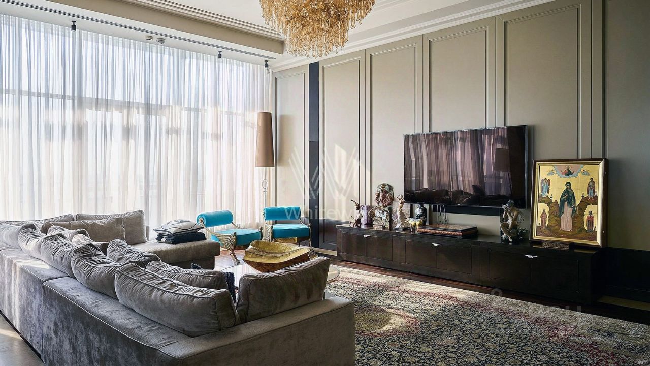 Видовой двухуровневый пентхаус с террасами в комплексе премиум-класса "Воробьёвы горы". Пентхаус общей площадью 640 м² расположен на 37 этаже. Выполнена дизайнерская отделка в классическом стиле с элементами ар-деко. Сдержанная пастельная палитра гармонично сочетается с природными фактурами и золотыми акцентами. Потолки высотой 3,8 метра украшают изящные люстры. Центром интерьера выступает двусторонний дровяной камин. Пентхаус полностью меблирован и укомплектован бытовой техникой. Установлены системы кондиционирования и приточно-вытяжной вентиляции. Панорамное остекление наполняет пространство естественным светом.