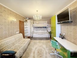 Просторная комната 19,1 кв. м с застеклённым балконом. Высокие потолки в 2,75 метра визуально расширяют пространство и делают его более воздушным. Паркетная и инженерная доска на полу создают особый шарм и придают квартире изысканность. Качественный базовый ремонт позволяет легко обновить интерьер по своему вкусу.