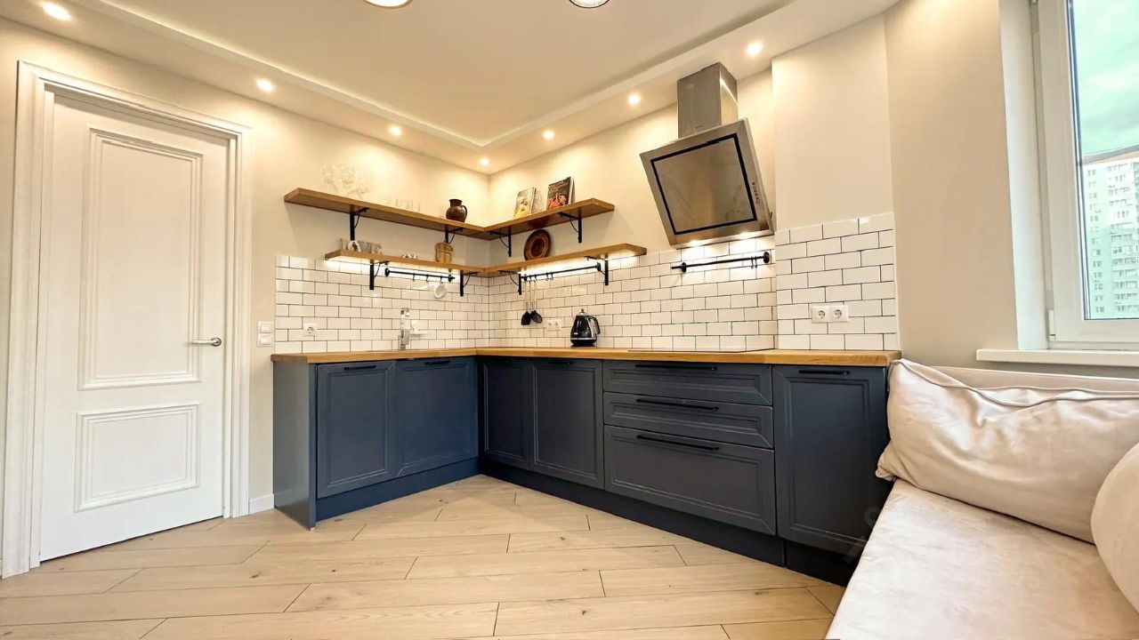 В квартире сделан современный качественный евроремонт. Частично меблирована и оборудована бытовой техника bosh. Встроенный кухонный гарнитур с техникой остается в подарок покупателю. В комнате встроенная вместительная гардеробная. Имеется возможность организовать полноценный домашний кинотеатр: одна из стен комнаты подготовлена под проекцию, смонтированы необходимые коммуникации и установлен звук. С/у укомплектован стиральной машинкой с сушилкой и современной сантехникой.