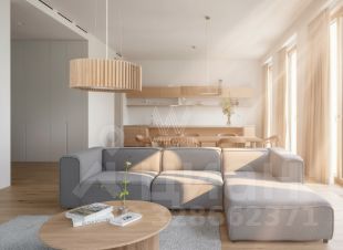 Функциональная планировка включает просторную кухню-гостиную с обеденной зоной, мастер-спальню с собственной ванной комнатой с окном и гардеробной, вторую спальню со своим санузлом и гардеробной, кабинет, который можно оборудовать как дополнительную спальню, гостевой санузел, хаммам и холл.