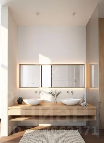 Квартира укомплектована встроенной бытовой техникой ASCO и мебелью, изготовленной на заказ. Сантехника представлена итальянским брендом Agape. Установлена приточно-вытяжная система вентиляции и увлажнения воздуха.
