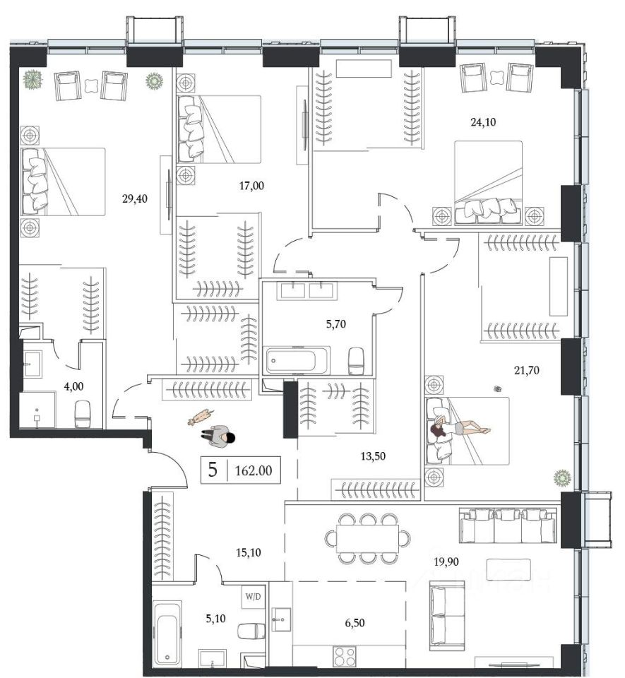 Продается 5-комн. квартира, площадью 162 м2. Возможен вариант покупки с использованием ипотечных средств.