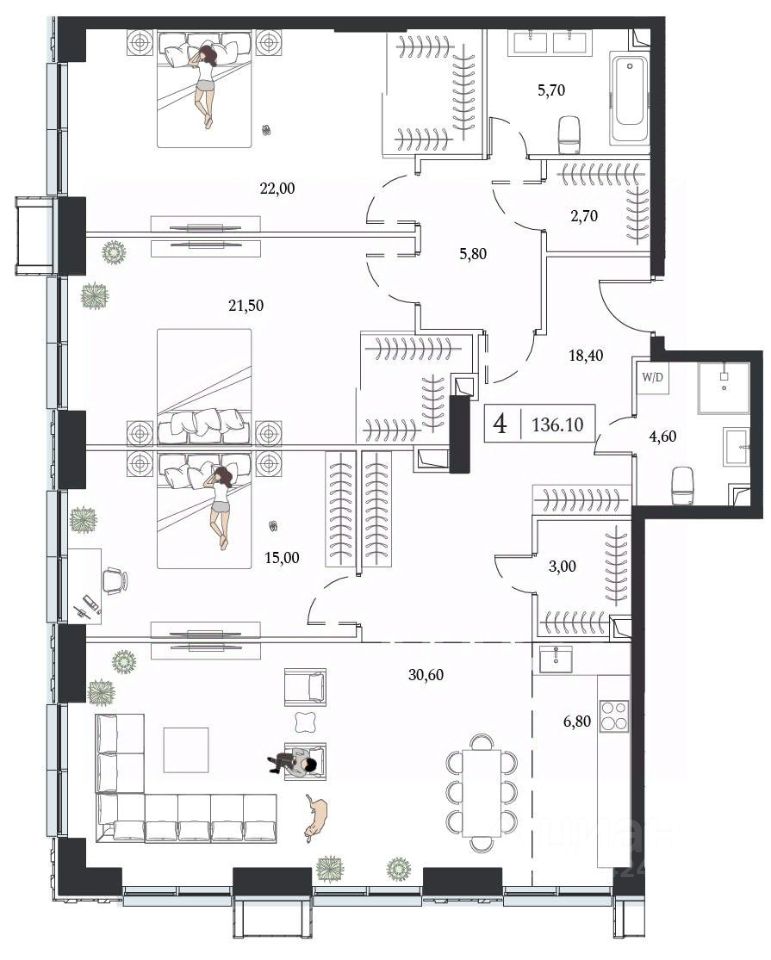 Продается 4-комн. квартира, площадью 136.1 кв.м. Возможен вариант покупки с использованием ипотечных средств.