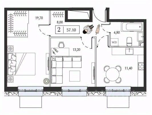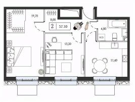 Продается 2-комн. квартира, площадью 57.1 м2. Возможен вариант покупки с использованием ипотечных средств.