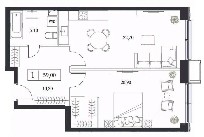 Квартира располагается на 11 этаже 24-этажного монолитно-кирпичного дома, высота потолков 3.15 м.