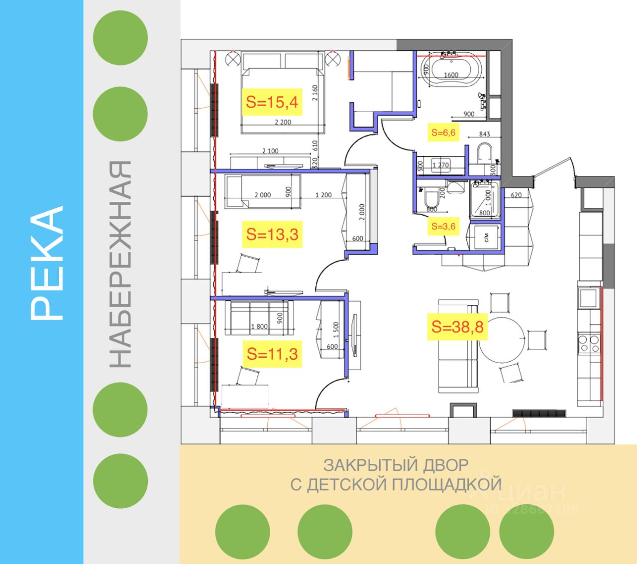 - Востребованная планировка (3 спальни + кухня-гостиная)