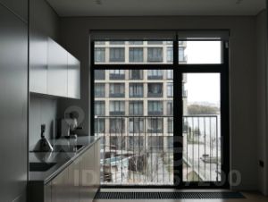 - Видовая кухня-гостиная 38 м² с панорамными окнами, видом на реку и выходом на балкон