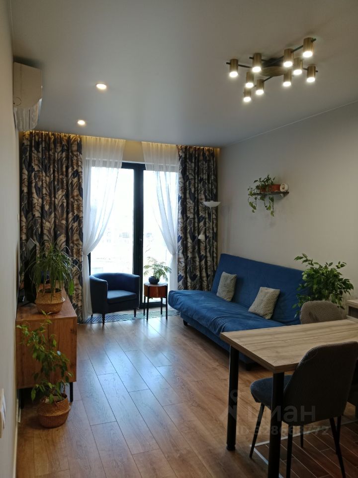 Квартира находится на комфортном 4 этаже, окна выходят во внутренний двор без машин на юго-восточную сторону. Общая площадь-34.5кв.м. большая кухня-гостиная 16.5 кв.м. с нишей под холодильник. Застройщиком предусмотрено большое панорамное окно в пол ( французский балкон) и система центрального кондиционирования воздуха. Спальня- 10.4 кв.метра.