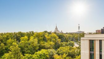 Видовая квартира с двумя спальнями в комплексе премиум-класса "Воробьев дом" в районе Раменки. Квартира общей площадью 125 м² расположена на шестом этаже в корпусе 1. Новая отделка в современном стиле с использованием натуральных материалов. Установлена система индивидуального кондиционирования.