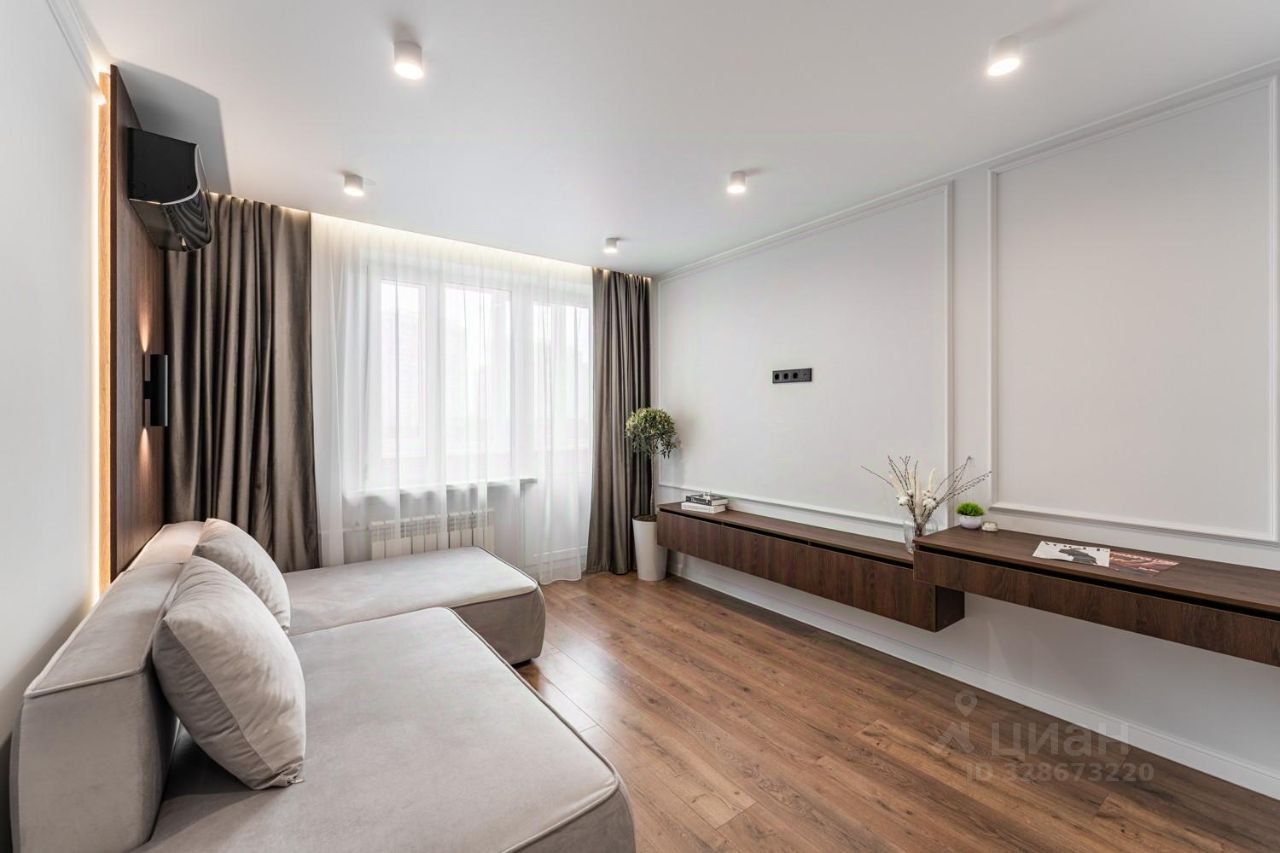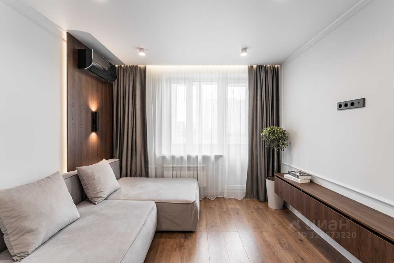 В квартире полностью завершён капитальный дизайнерский ремонт. В отделке использовались только качественные и современные материалы. Заменена полностью электрическая проводка, собран новый коллекторный узел с трубами Rehau и качественным итальянскими кранами. Новый стояк отопления. Установлены новые двухкамерные пластиковые окна Rehau. Во всех комнатах стоят новые радиаторы отопления. Полностью разбирался старый пол и выполнена стяжка. Все стены выровнены по маякам, подготовлены под покраску и окрашены в стильный дорогой цвет качественной краской San Marco, плинтуса также под покраску в цвет стен. Натяжной сатиновый потолок. Износостойкий влагостойкий ламинат 33 класса. В прихожей, санузле, кухне и гардеробной на полу широкоформатный керамогранит 60 на 120, везде с тёплым полом. Установлена современная парящая ванная с подсветкой. Скрытые карнизы так же все с подсветкой.