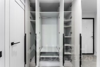 В квартире имеется просторная гардеробная. Много мест хранения. Абсолютно вся мебель в квартире делалась на заказ по индивидуальному эскизу и размерам из качественных материалов, фасады МДФ, фурнитура Boyard с доводчиками.