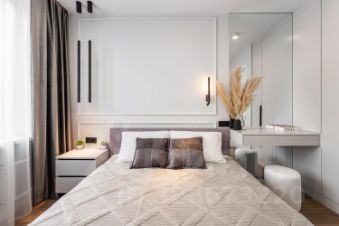 В спальне установлена кровать с подъёмным механизмом и ортопедическим матрасом.