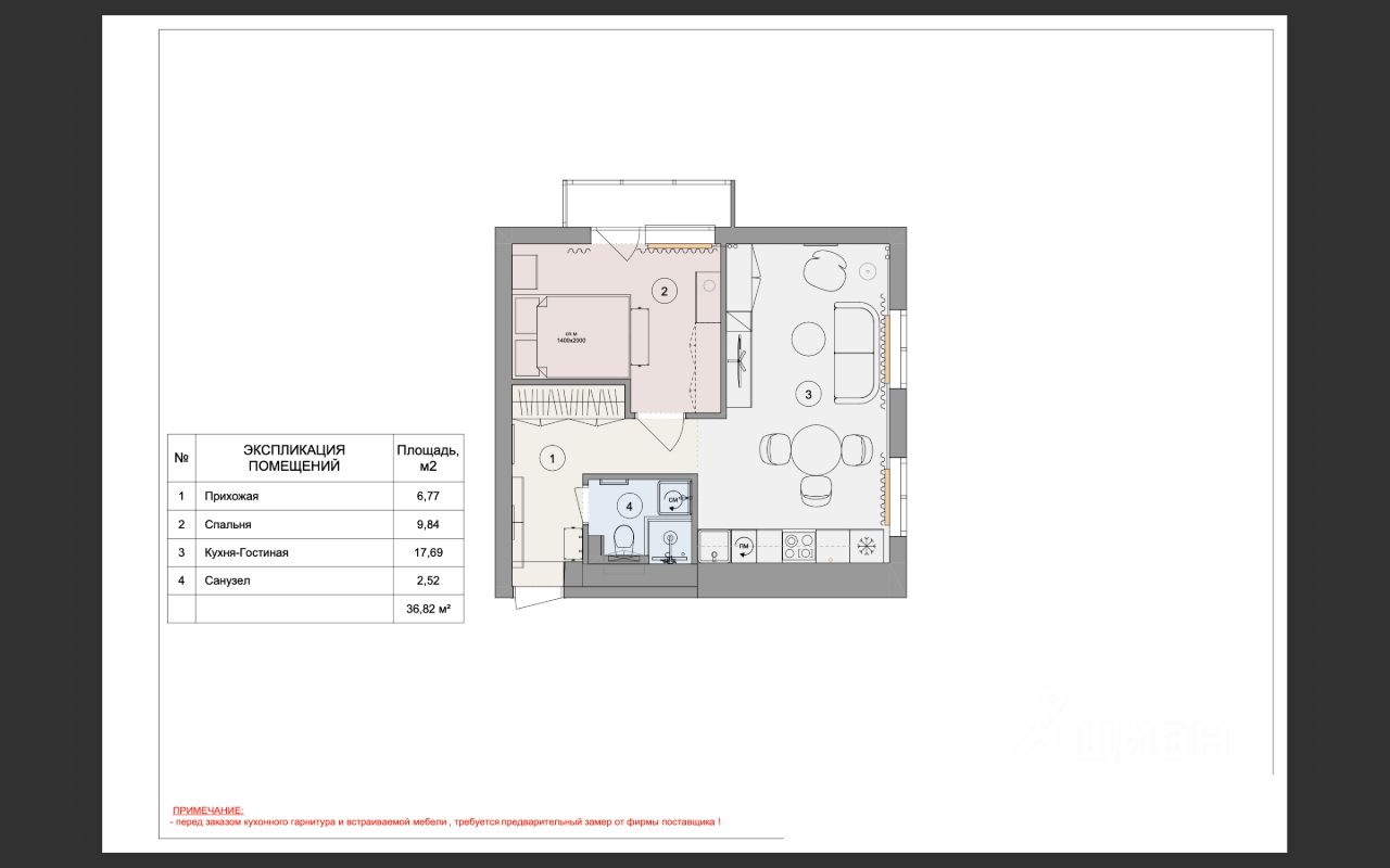 Площадь: 36,8 кв. м.