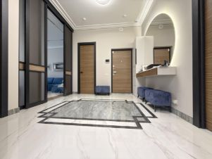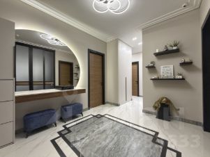 Безупречно выровненные стены, стеклопакеты из экологичного алюминиевого профиля, премиальные передовые светильники, керамогранит, плитка, безукоризненные обои, превосходная сантехника, встроенная качественная мебель из МДФ.